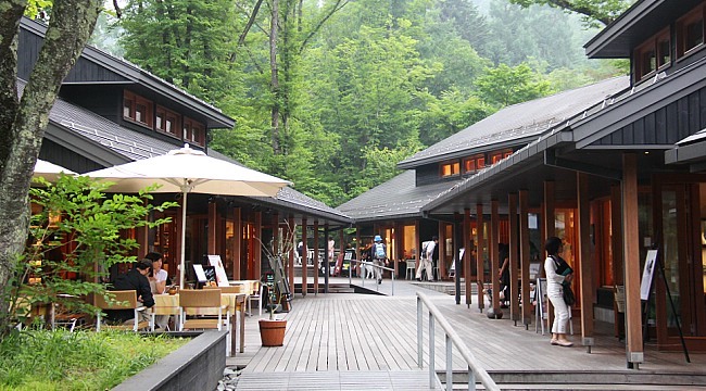 Naka-Karuizawa (中軽井沢) is a secondary town center four kilometers west of Kyu-Karuizawa. It has fewer shops and restaurants than Kyu-Karuizawa, but offers several other sites of interest. In particular, the Hoshino Resort area has an elegant atmosphere integrated into the woods, offering chic restaurants, shops and a hot spring bath. Naka-Karuizawa further offers some museums and attractive parks with recreation space.