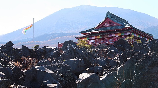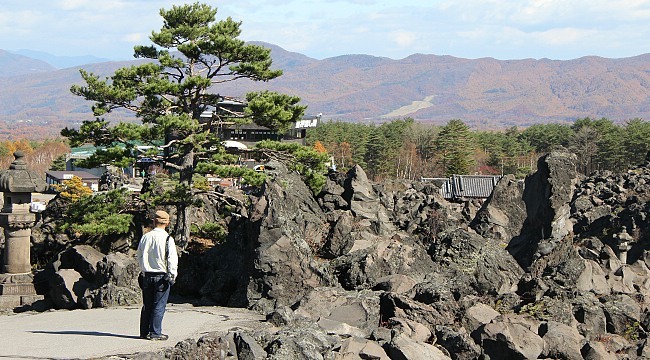 The Onioshidashi Park (鬼押出し園, Onioshidashien) features a landscape of volcanic rocks that gives it an unique and rugged appearance. The park is shaped by volcanic sediment deposited here during the 1783 big eruption of Mount Asama. It is located just across the prefectural border in Gunma Prefecture, but popularly visited in combination with Karuizawa.