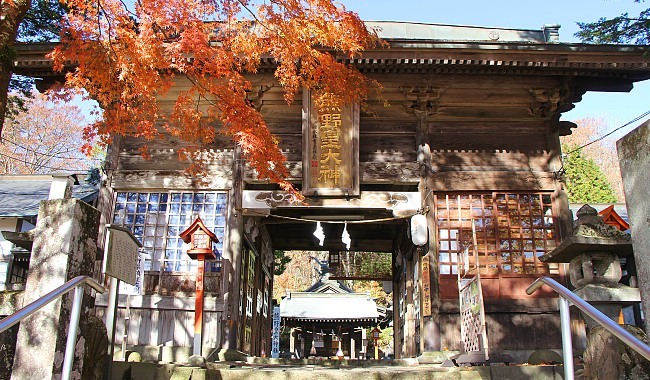 Nearby is the Kumano Kotai Shrine (熊野皇大神社, Kumano Kōtai Jinja) which interestingly sits on the border of Gunma and Nagano as well. There are three halls at the shrine: the main hall (hongu) sits on top of the border, the Nachi hall on the Nagano side to the left, and the Shingu Hall on the Gunma side to the right. The Kumano Kotai Shrine is a branch shrine of the Kumano Sanzan shrines on the Kii Peninsula.