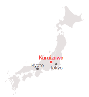 Karuizawa (軽井沢) is an upmarket mountain resort at the foot of the active volcano Mount Asama in Nagano Prefecture. Located at an altitude of roughly 1000 meters, the town provides a pleasant escape from the summer heat. It was promoted as a mountain resort by Western residents of Japan in the late 1800s, and today many wealthy urbanites own a second home there. Thanks to the Hokuriku Shinkansen it takes little more than an hour to reach Karuizawa from central Tokyo.